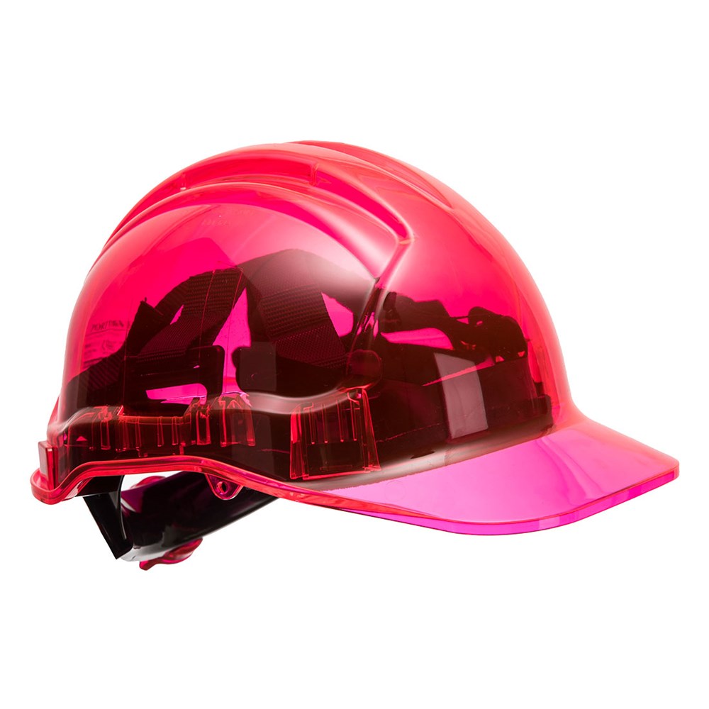 De Peak View helm met draaiknop is een exclusief Portwest gepatenteerd ontwerp. De doorzichtige schelp zorgt ervoor dat de drager naar boven kan kijken zonder het hoofd te hoeven optillen. De extra sterke lichtgewicht polycarbonaat schelp beschermt tegen UV straling. Andere kenmerken zijn het 6-punts textiel binnenwerk en verstelbaarheid middels een draaiknop.
