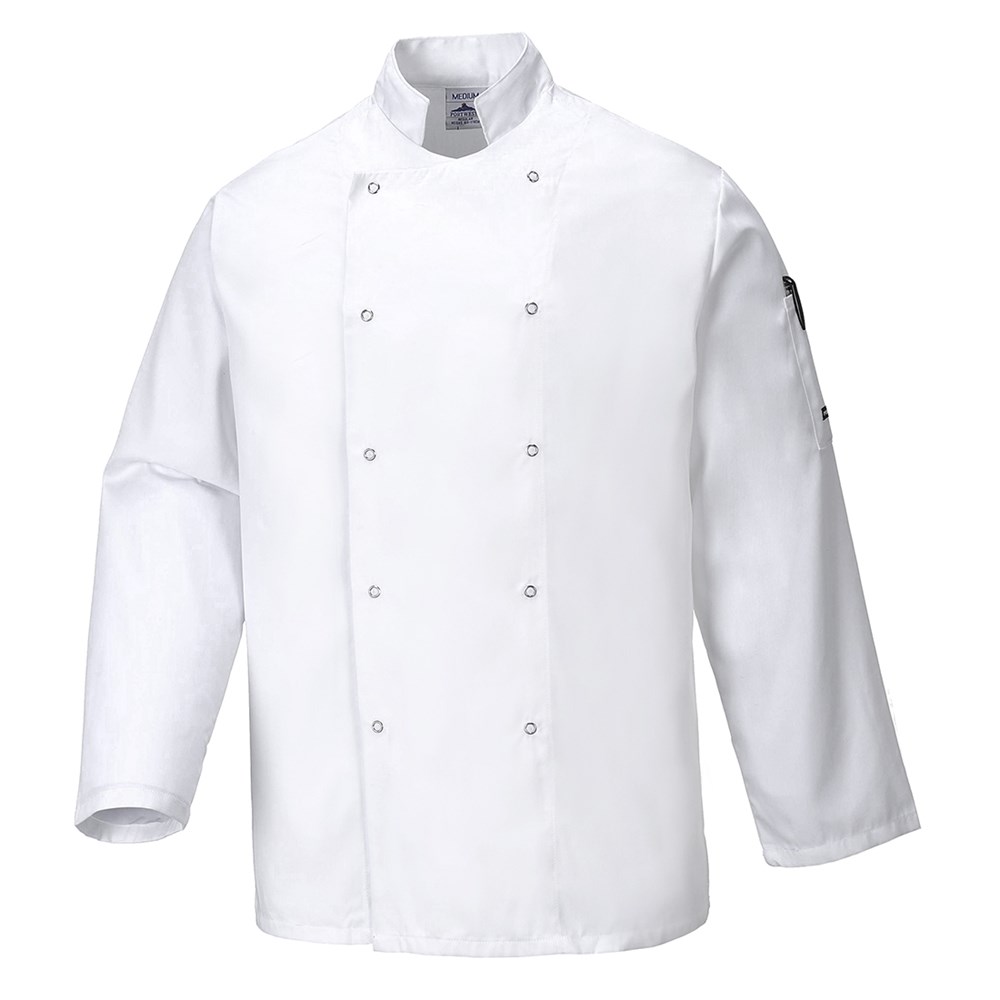 Ontworpen voor drukke professionals. De Suffolk koksjas is perfect voor de moderne keukenomgeving. Het zorgt ervoor dat men gemakkelijk beweegt en heeft een handige sluiting. Dit model laat u er goed uitzien en fris voelen gedurende de gehele dag.