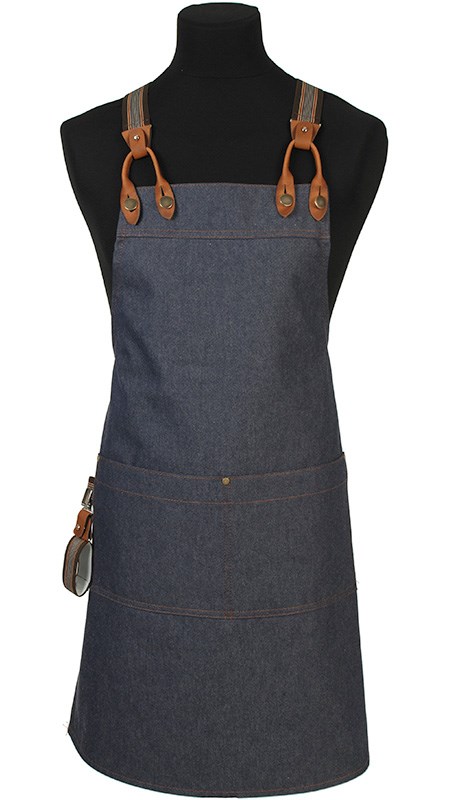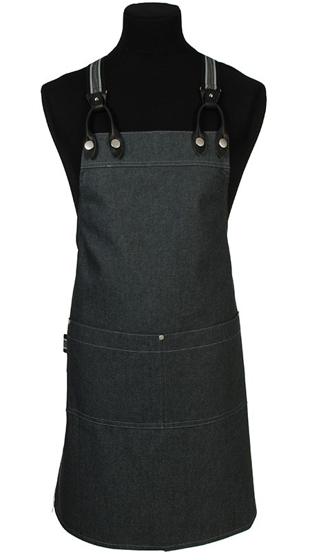 Denim schort met luxe X bretels (M) en handdoeklus. Door gebruikt te maken van verstelbare X bretels haal je de druk uit je nek en rust het schort op je schouders. Deze zeer modieuze en luxe X bretels zijn ontstaan uit een Co-Branding met Sir Redman. Ook deze bretels worden op geheel ambachtelijke wijze met passie gemaakt in Nederland en sluit zo perfect aan bij de passie en oog voor details van de schorten van Schriks. Dit komt ook terug in de afneembare handdoeklus en het accent aan de zak van het schort. Model 4180 wordt standaard met Medium X bretels geleverd.